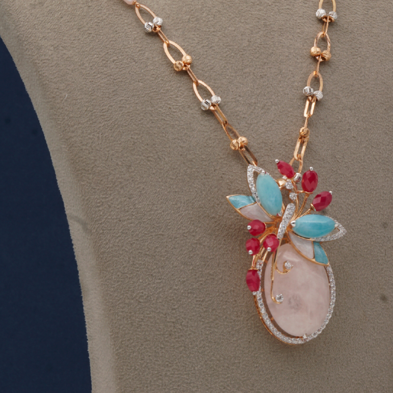 Rose Gold Butterfly Gemstone Pendant Set with Ruby Stones